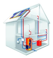 Kolektory s³oneczne to urz±dzenia s³u¿±ce do przetwarzania promieniowania s³onecznego w energiê ciepln±. Umieszczone na dachu kolektory s³oneczne skupiaj± promienie s³oneczne. Pozyskana w ten sposób energia przekazywana jest przewodz±cej ciep³o cieczy. Ciecz odprowadzana jest do zasobnika s³u¿±cego do ogrzewania wody u¿ytkowej.